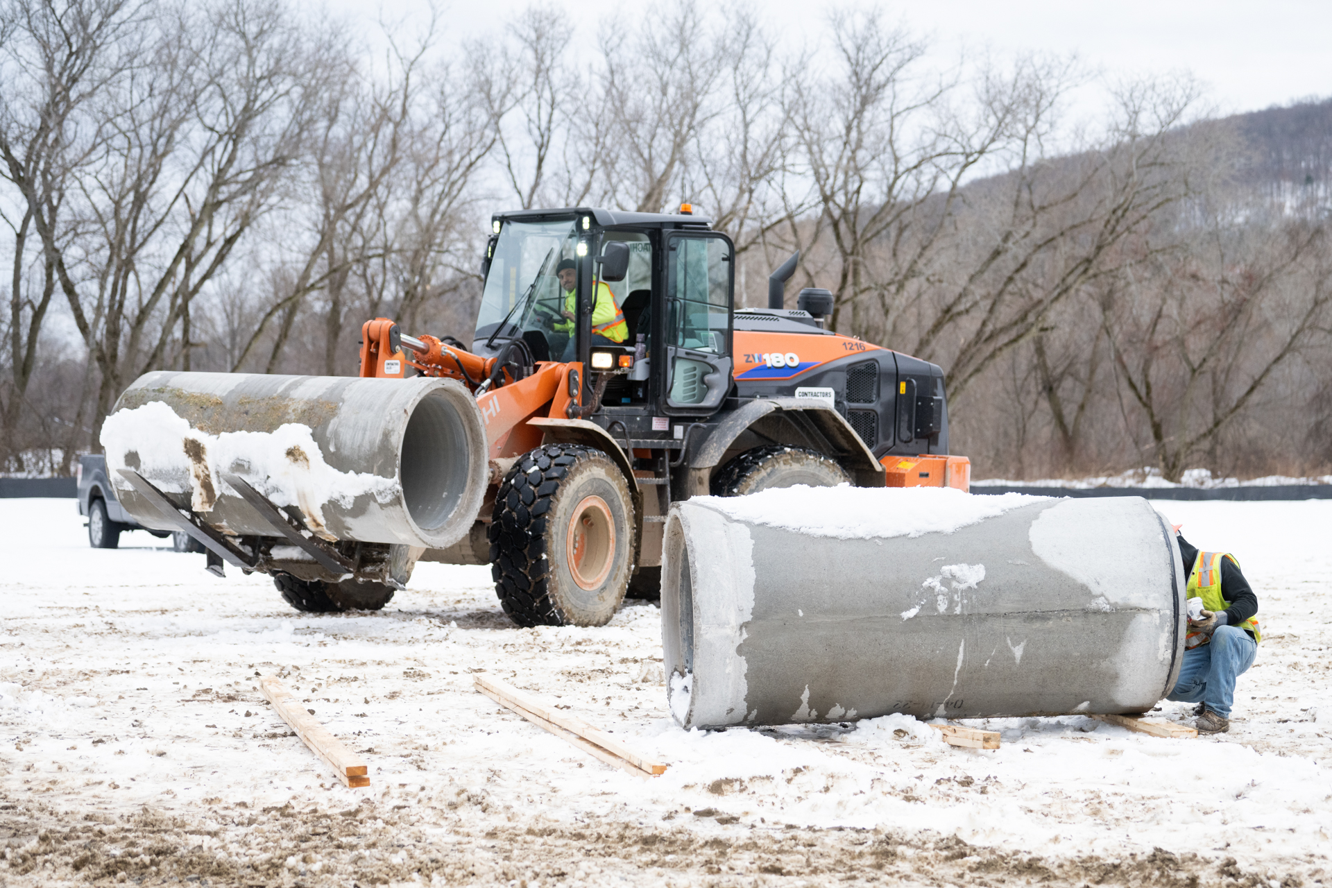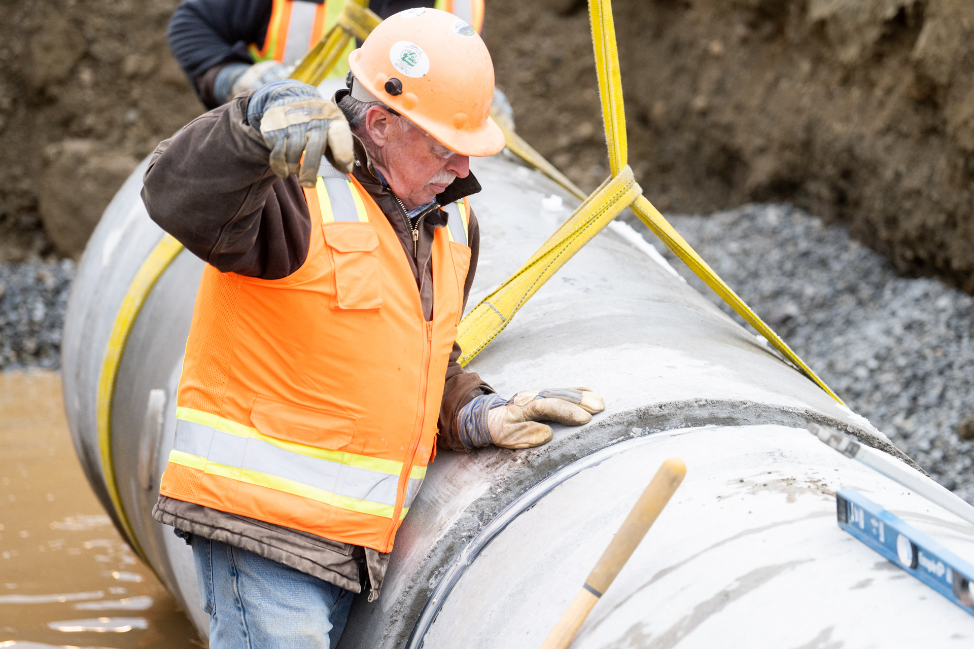 – Install approximately 2,500 LF of large diameter Reinforced Concrete Pipe (RCP) with related manholes, catch basins and outlets.