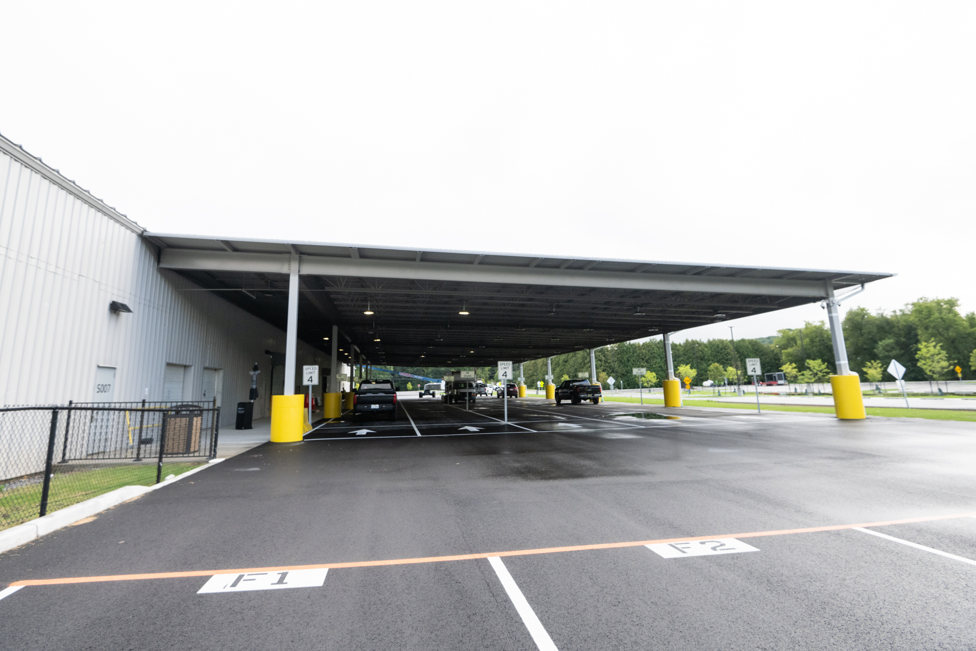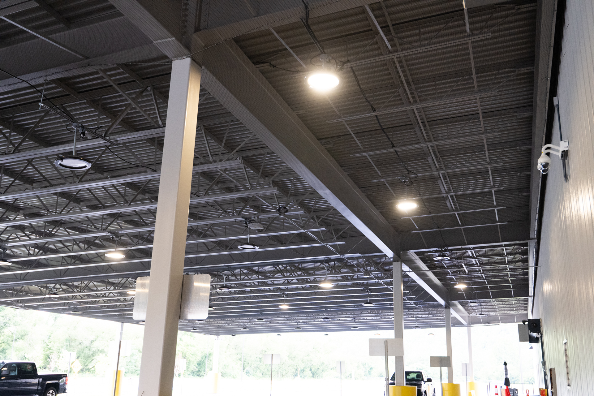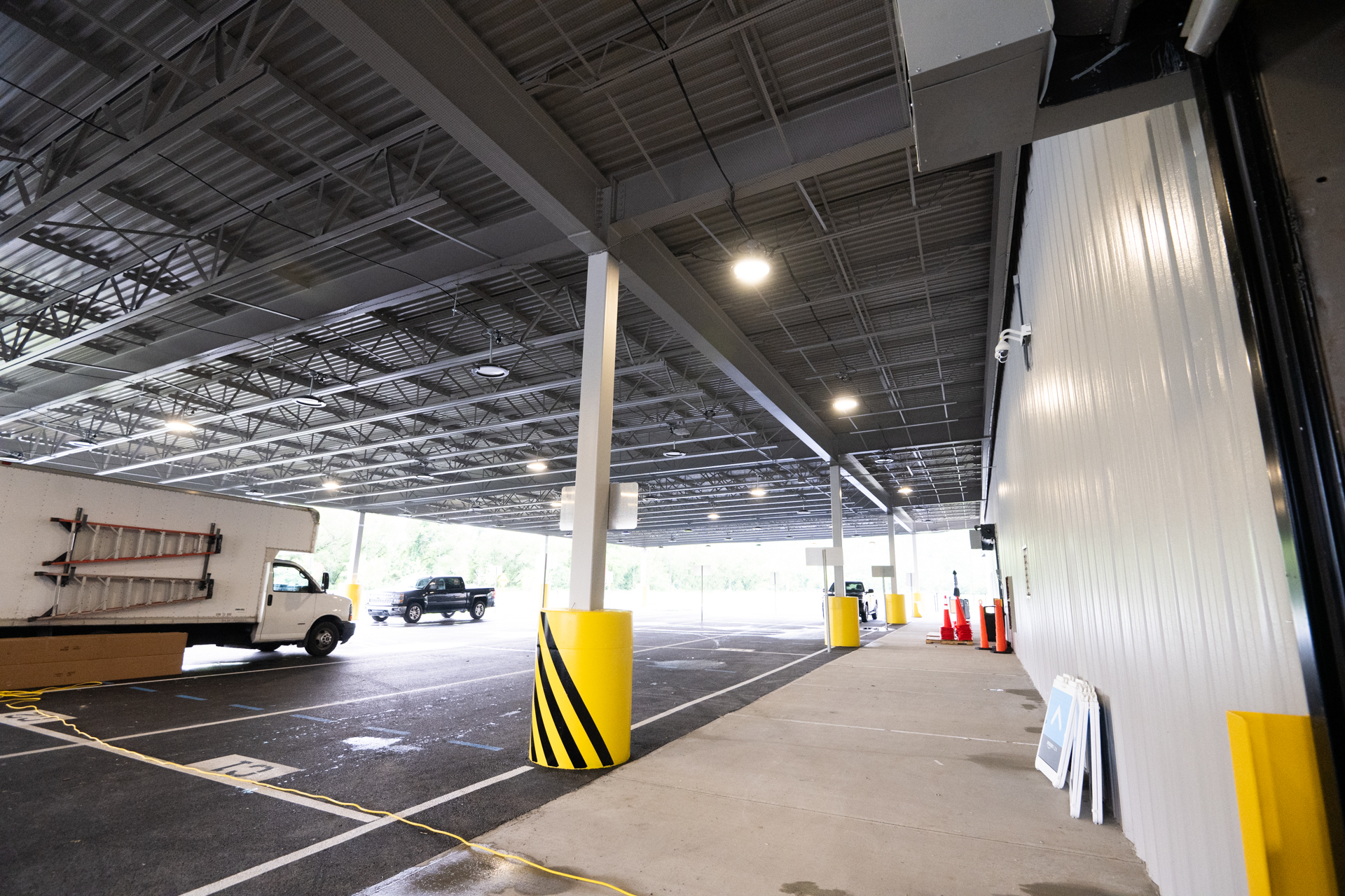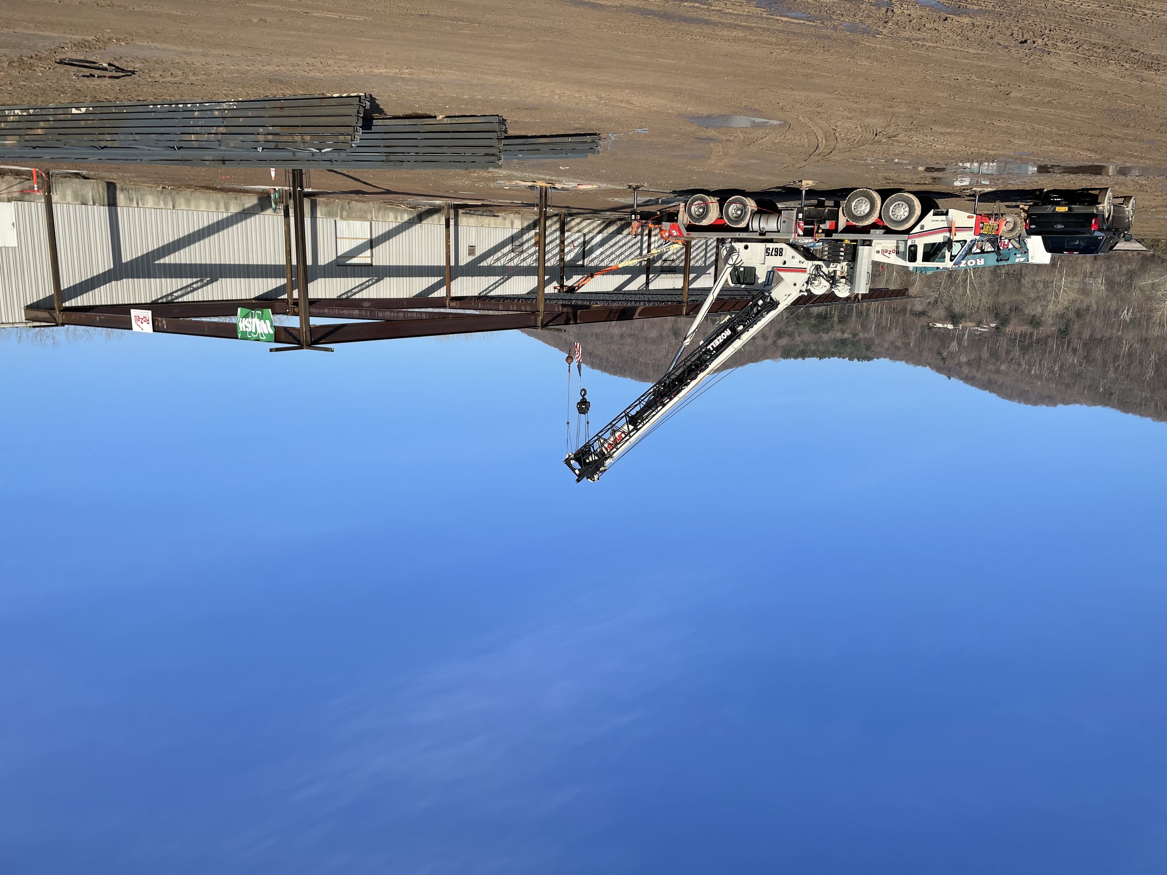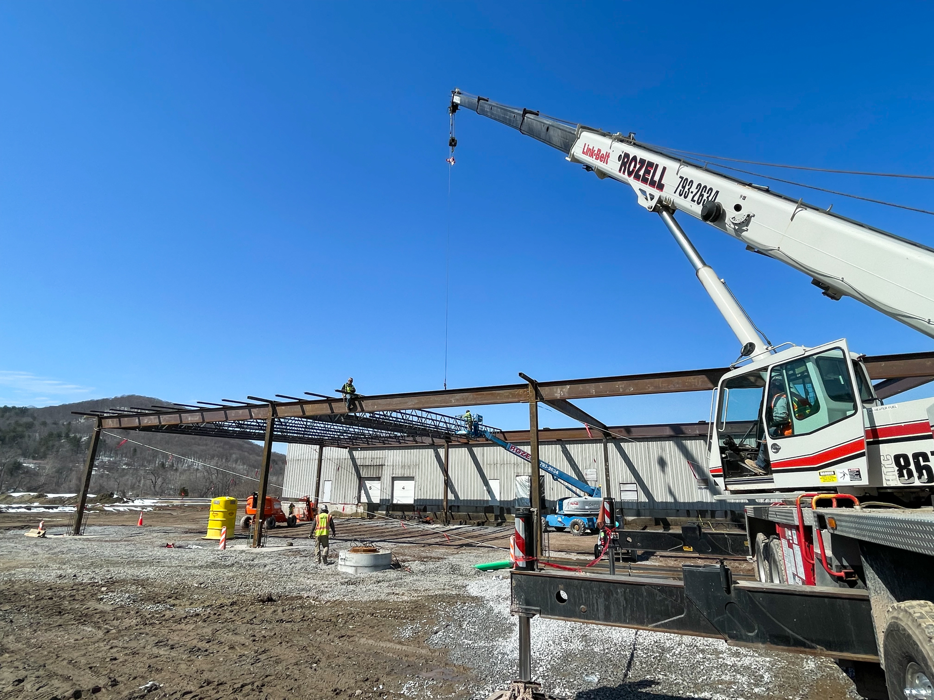 Rozell Industries fabricated and installed a new 16,800 SF Steel Carport Canopy at the new Amazon facility in Granville NY. Utilizing our 75 ton Link-Belt crane, we were able to place the steel beams on the canopy foundation (poured by Rozell).