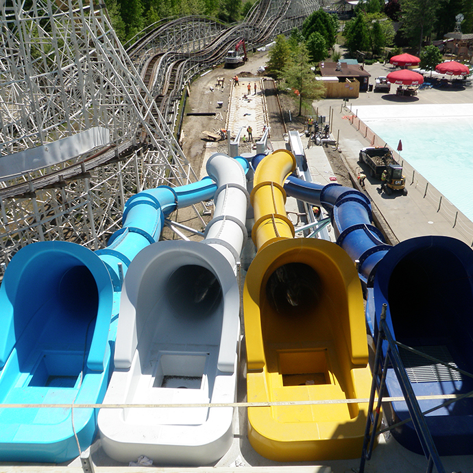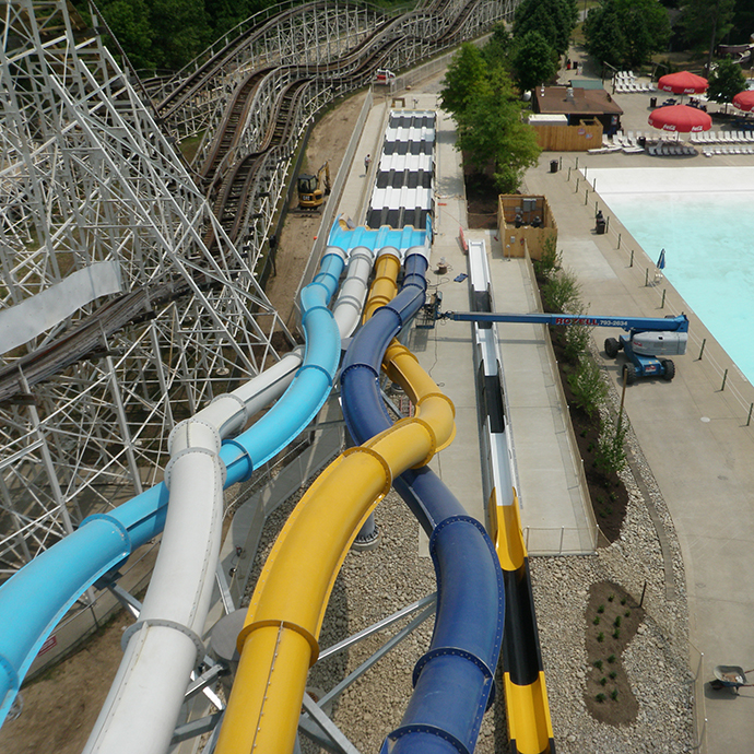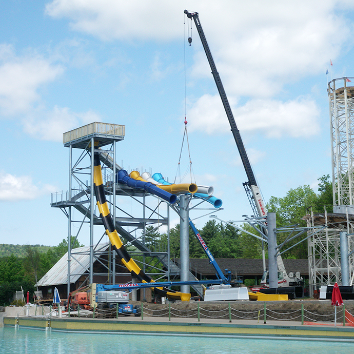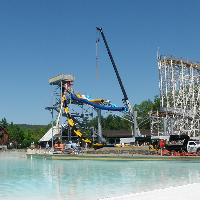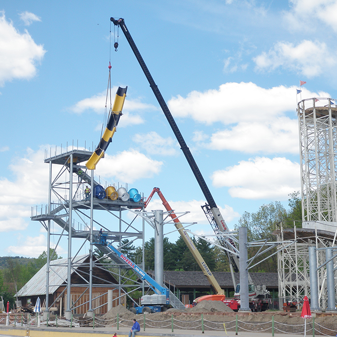 Rozell Industries completed the installation of a two level waterpark ride at Six Flags Great Escape. We utilized our fleet of heavy equipment to erect the ride.