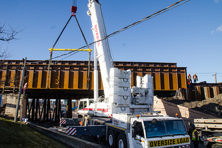 Recently, we were hired on to lift and install the sides of a railroad bridge, each 122 feet in length, 12 feet high, and weighing in at 71 tons each. Our professional and experienced crew combined with our top-of-the-line equipment (the Todano 400G-6 450 ton crane) make for a relatively easy, affordable, and safe. For more information on our 450 ton crane rental in Schenectady , crane rental service, or our other services, be sure to check out our projects or services pages of the website. For a quote, call us at (877) 501-0055 or request one though the website below.