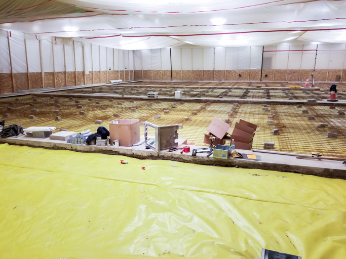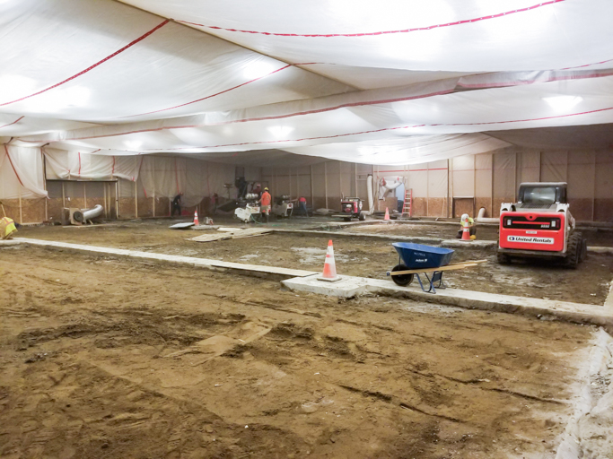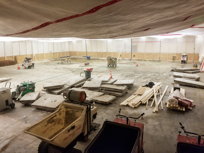 - Remove existing concrete floor and abandoned studio ice rink refrigerant lines embedded in concrete