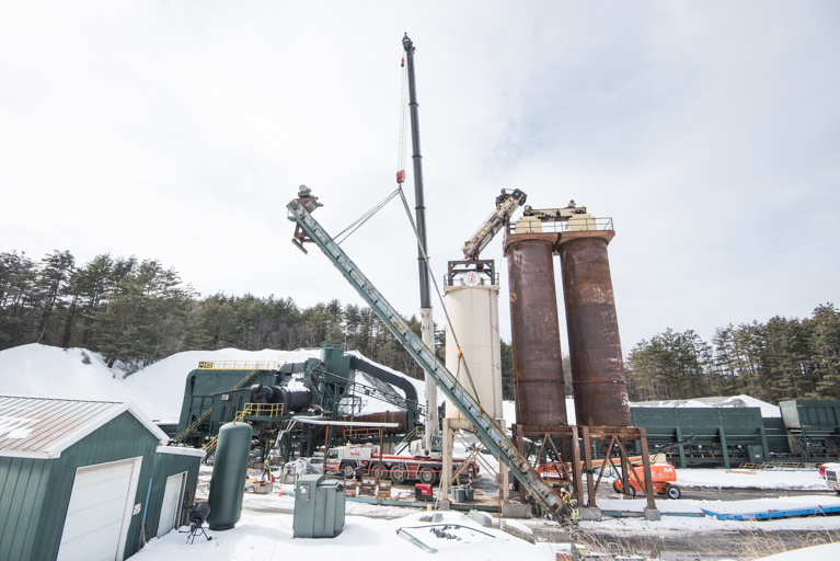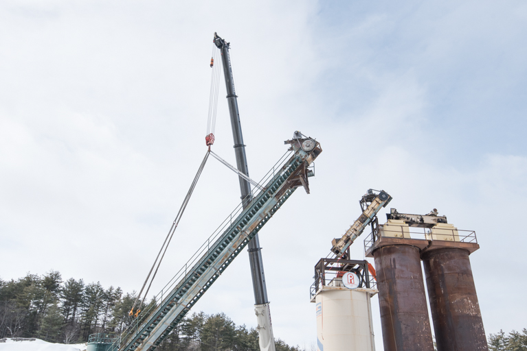 Completing a section of a black top plant for Peckham Industries, Rozell was utilized for a crane rental for conveyor belt installation along with setting black top silos. Using our 200 ton Link-belt all-terrain crane, we hoisted the drag conveyor belt in the air, rotated 90 degrees, and then finally set into place. The black top silo tanks pictured were also set by Rozell on a pervious day. We take pride in servicing our community for crane rentals in the adirondack region and beyond. Give a call today to schedule your next project, 518-793-2634.