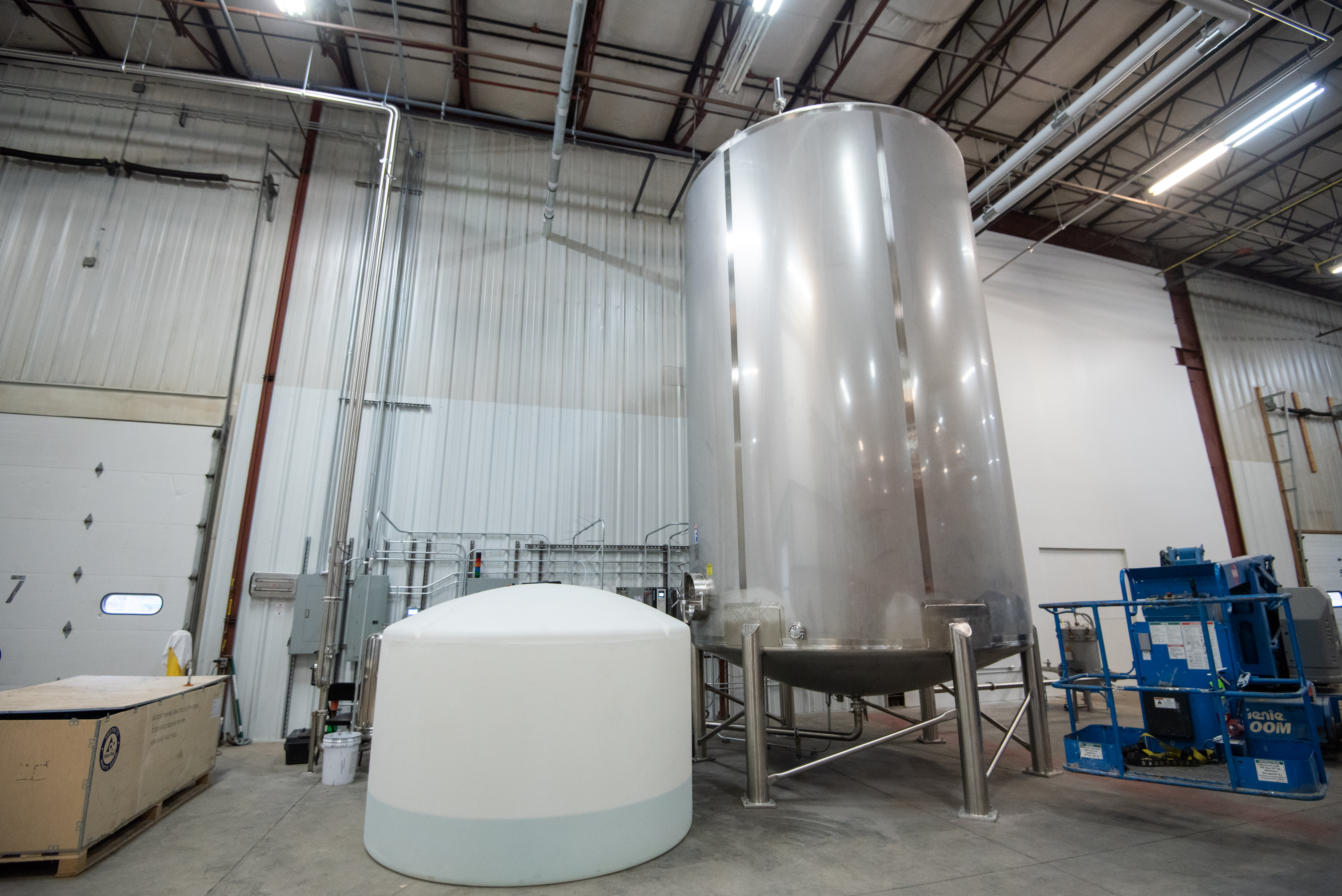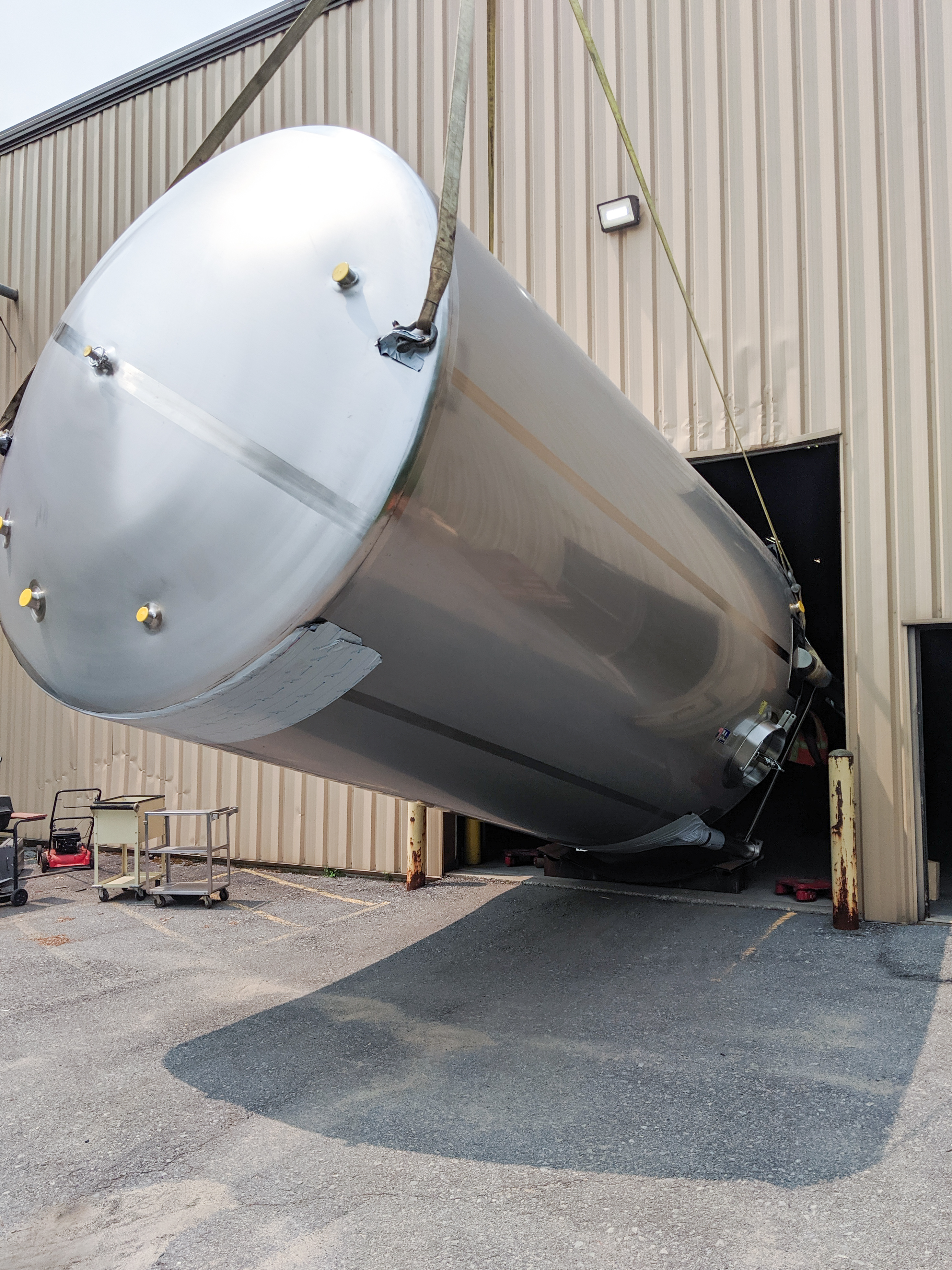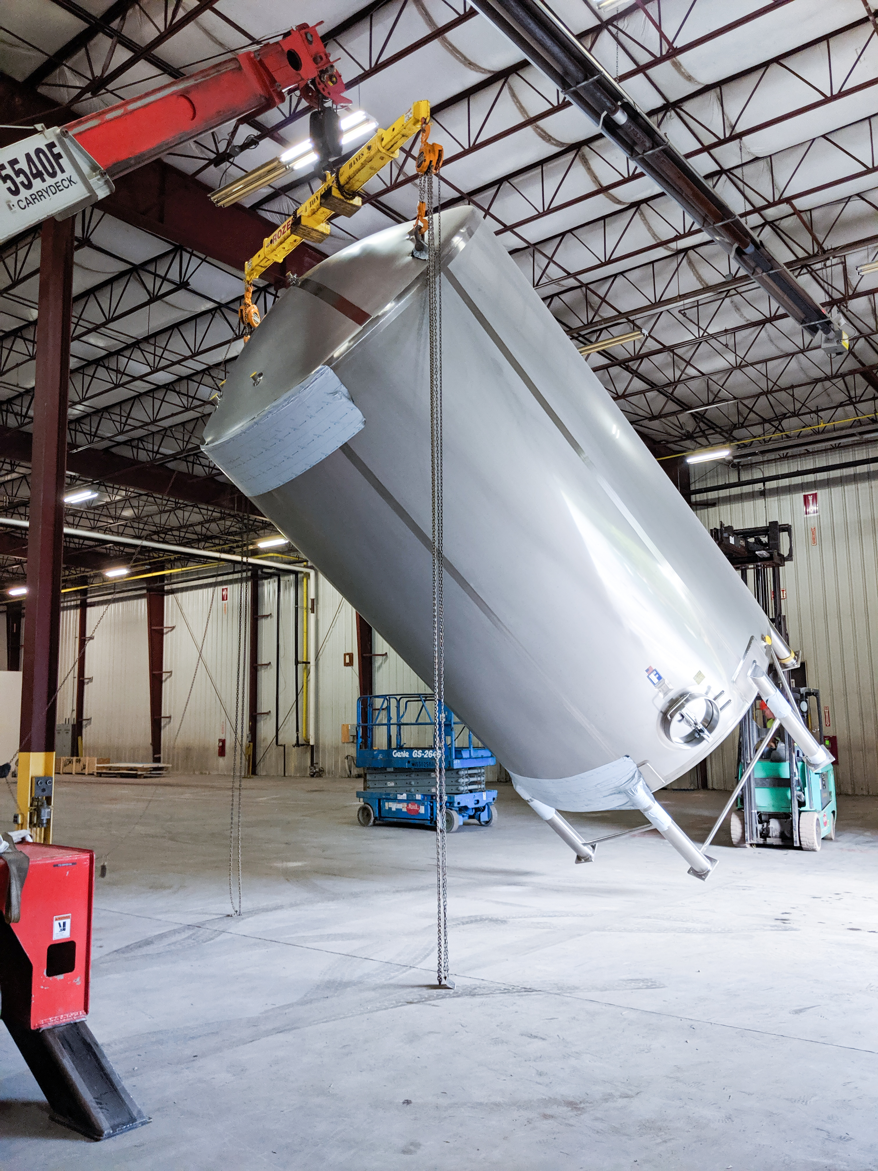 Utilizing multiple cranes, Rozell was able to mobilize the tank into place with minimal clearance though the wall opening.