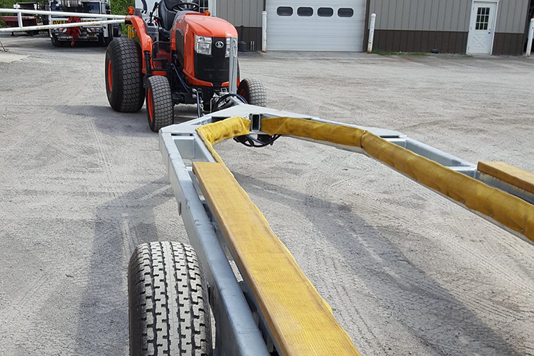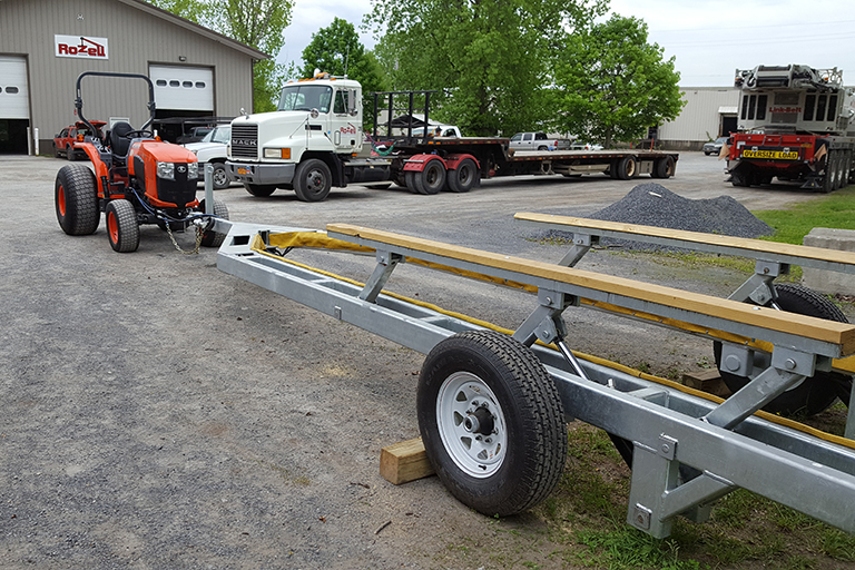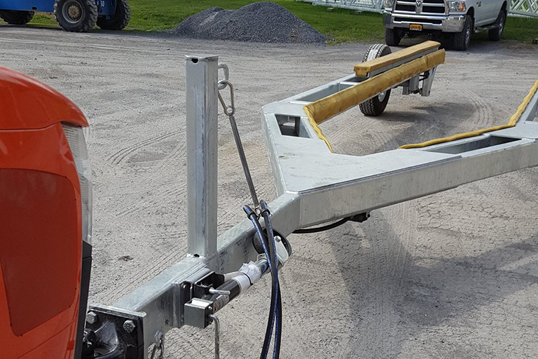 Rozell's custom metal fabrication team created this Custom Hydraulic Boat Trailer designed for a quick launch at a local Marina. The customer wanted to attach the trailer to their existing tractor's hydraulic system so Rozell created a custom hitch to fit this need. This trailer was designed, fabricated, and sent out for galvanizing before it was delivered to their very pleased customer. Contact us today for your custom hydraulic boat trailer design and build.