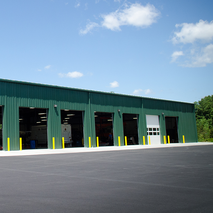 Fully modernized 14 bay heavy truck repair facility. This turnkey, 20,000 sq. ft. pre-engineered metal building utilized a reclaimed oil fired boiler feeding a radiant floor heating system coupled with through insulation yields a energy efficient building for the customer.
