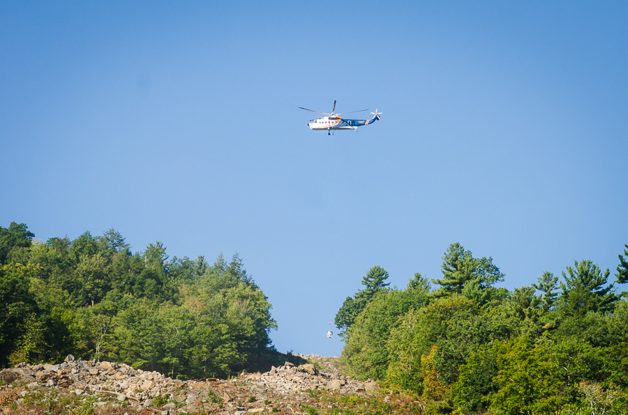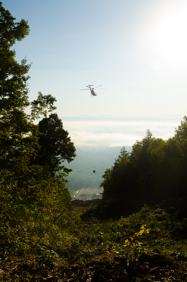 Our hometown ski area, West Mountain, installed a much needed new chair lift in Summer 2015. Rozell Industries was hired to create the footings for the lift towers and wheelhouses for the chair. In order to supply the concrete for each footing, a helicopter with a dump hopper was called in to do the heavy lifting in tricky areas.